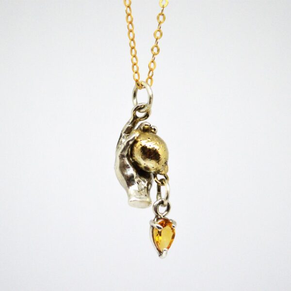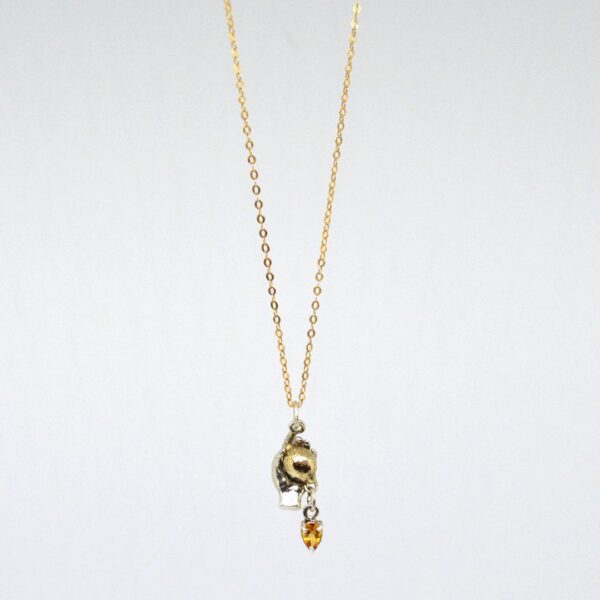 Collana in argento, ottone e argento placcato oro con quarzo citrino.